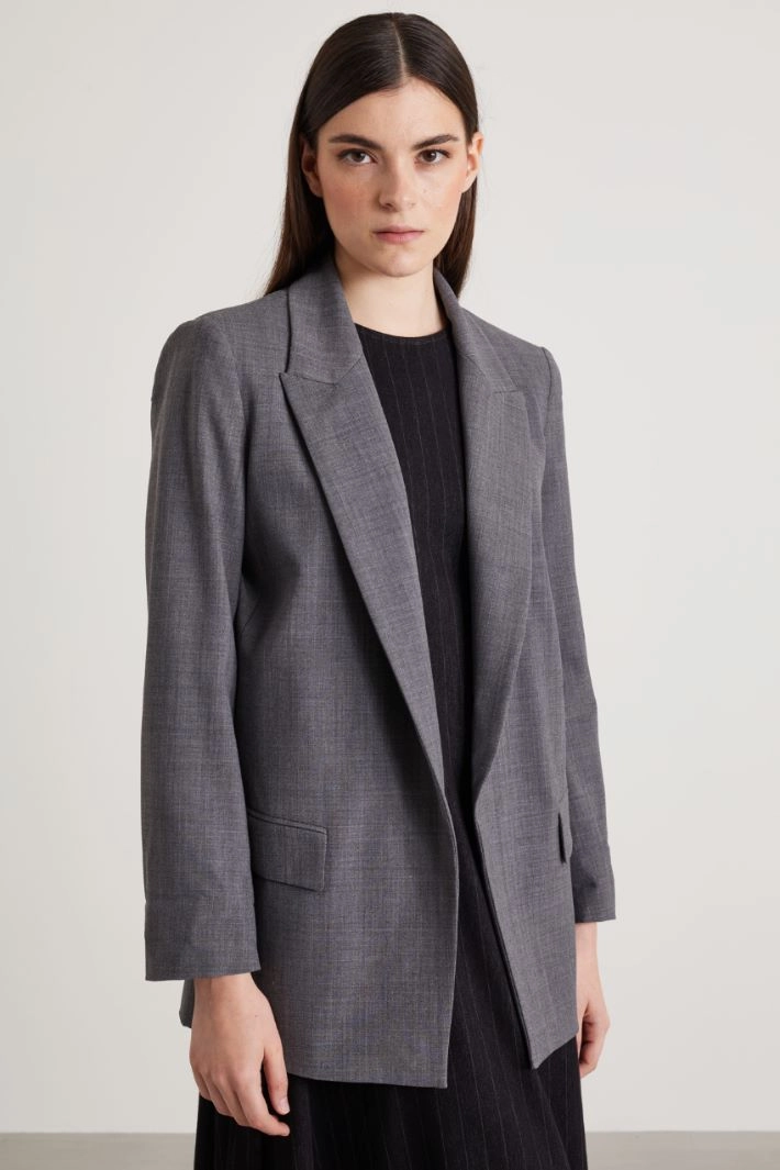 Straight-fit blazer in stretch wool blend canvas, with lapel collar, long sleeves with poplin cuffs and flap pockets. Lined.