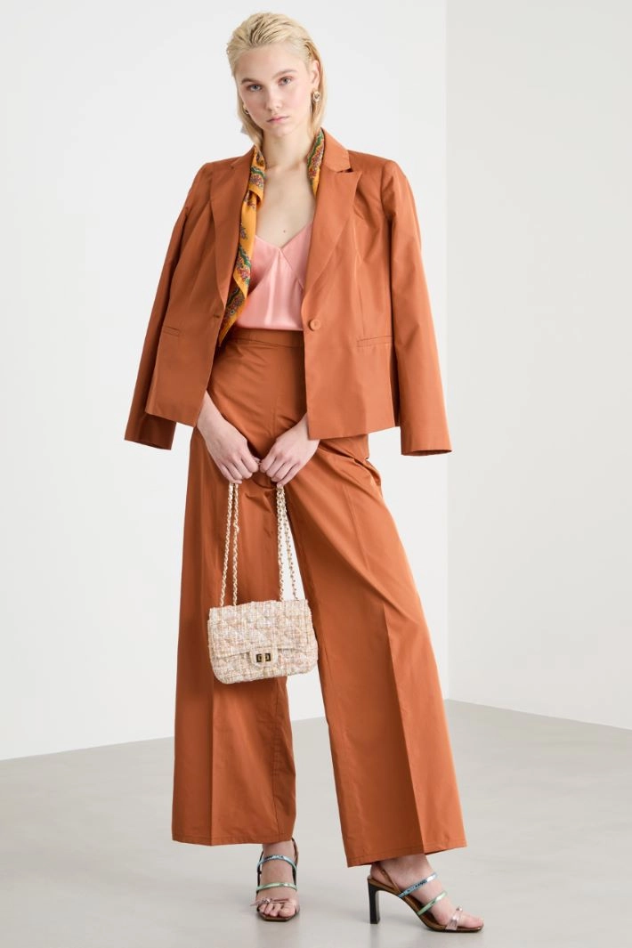 Straight-fit palazzo trousers in silk-blend taffeta, with side-seam pockets and an invisible zip fastening on the side.