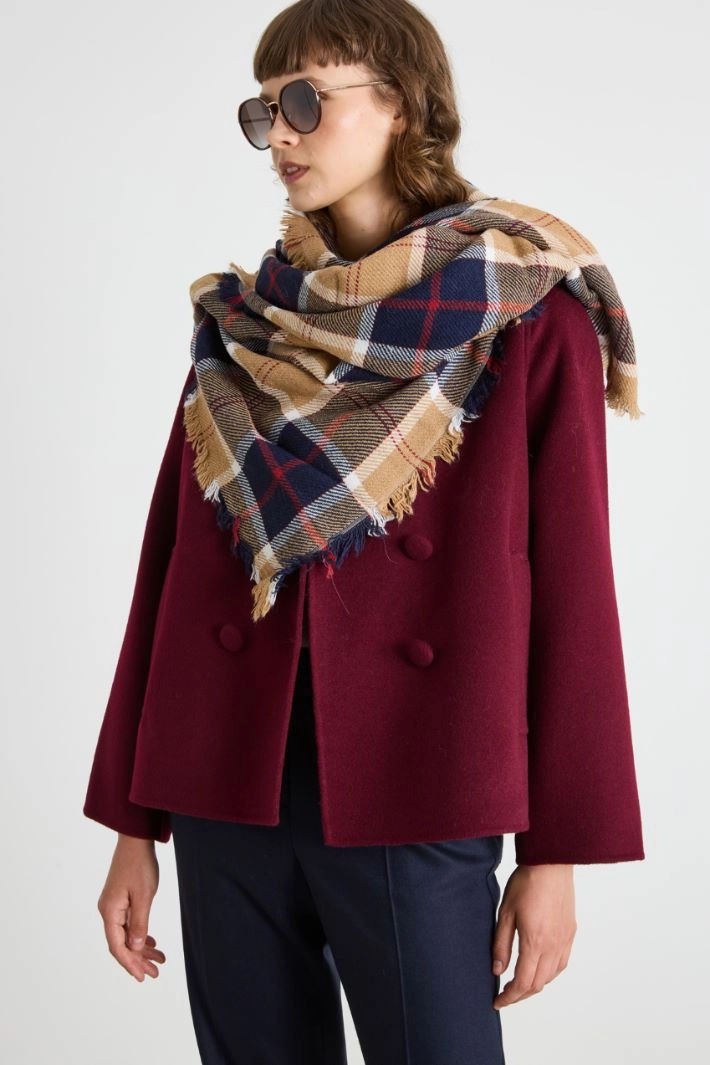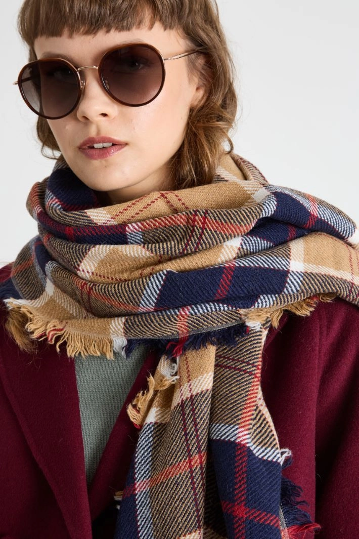 Stole in soft wool and alpaca blend fabric, yarn-dyed and with fringed edges.