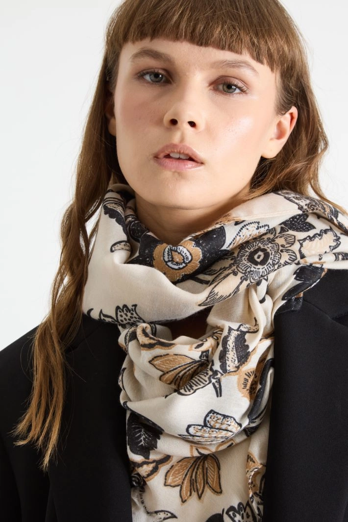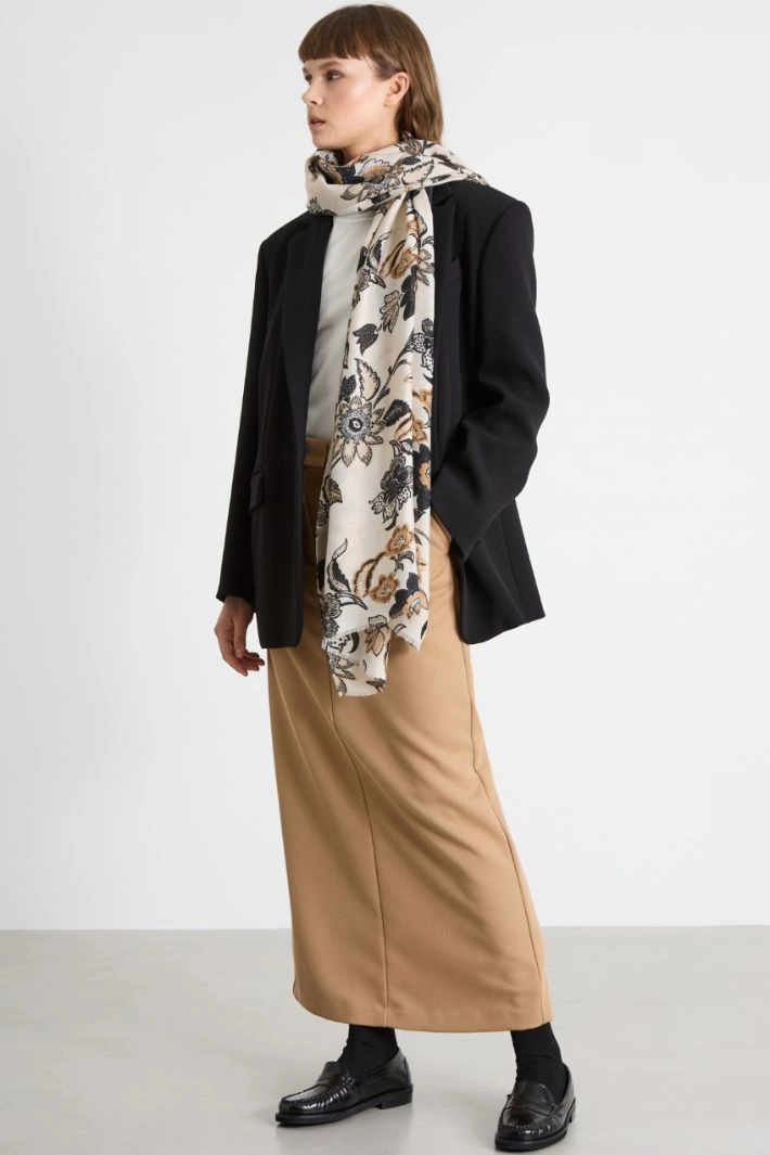 Stole in printed canvas with fringed edges.