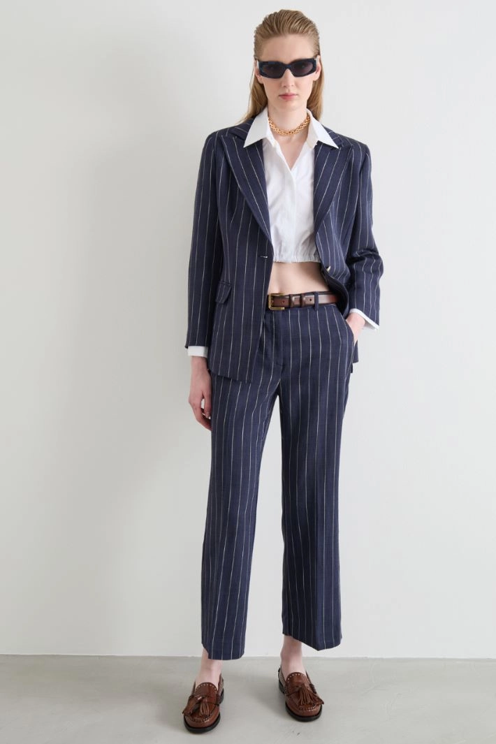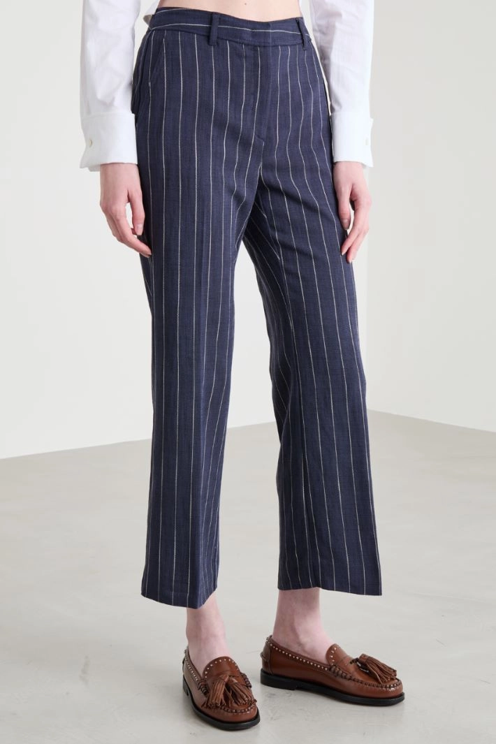 Straight-fit trousers in stretch viscose-blend natté, with a flared hem, belt loops, French pockets on the front and welt pockets on the back. Fastening with a concealed zip and hook.