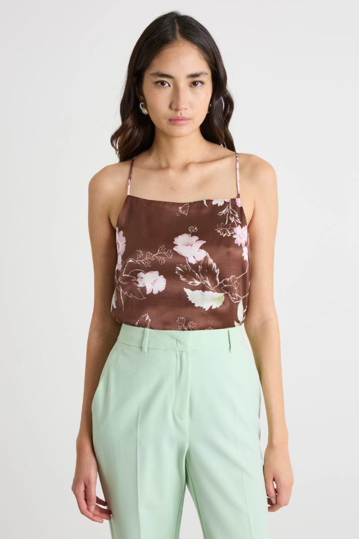 A-line top in printed silk with a square neckline and slender straps.