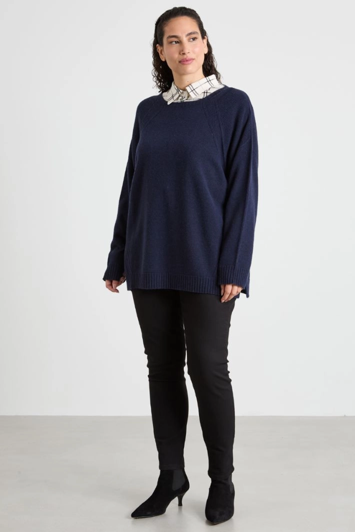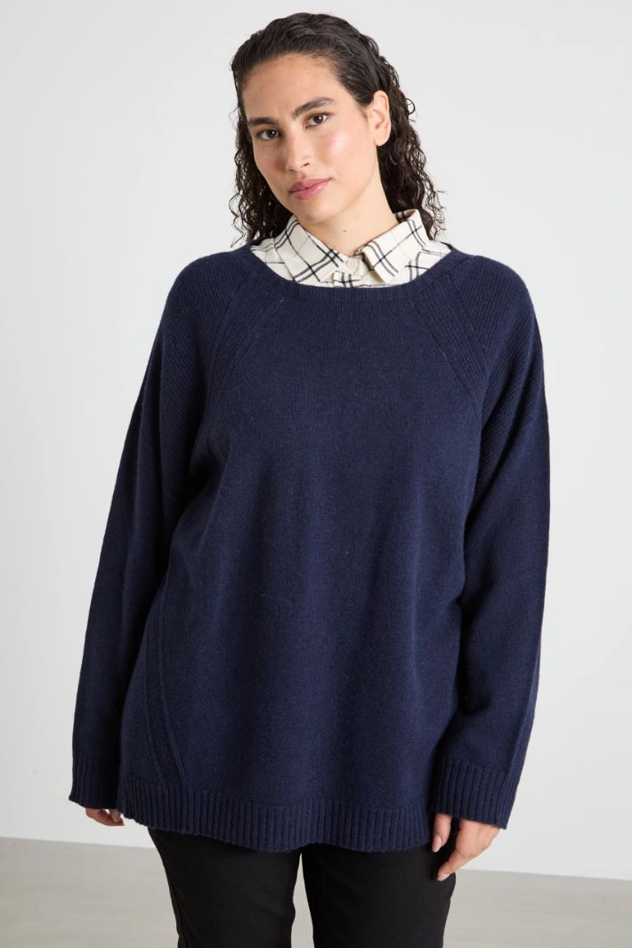Regular-fit sweater in viscose and wool blend yarn, with a crew neck, long raglan sleeves and ribbed trims.
