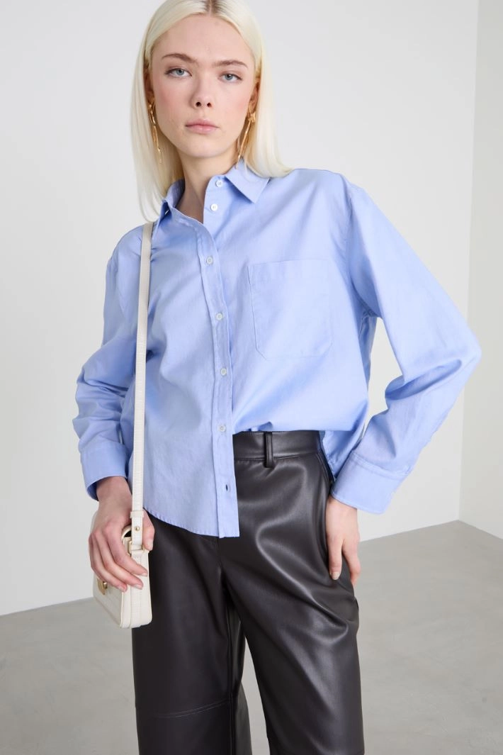 Straight-cut shirt in pure cotton Oxford, with classic collar, long sleeves with cuff and button, and yoke with counter pleat on the back. Button fastening.