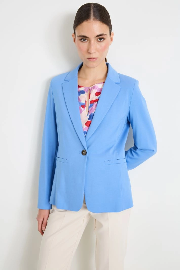 Fitted blazer in viscose blend jersey, with lapel collar, long sleeves, welt pockets and button fastening.