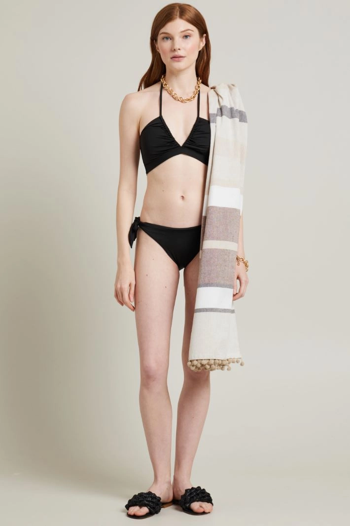 Stretch technical jersey bikini bottom with laces to tie at the sides.