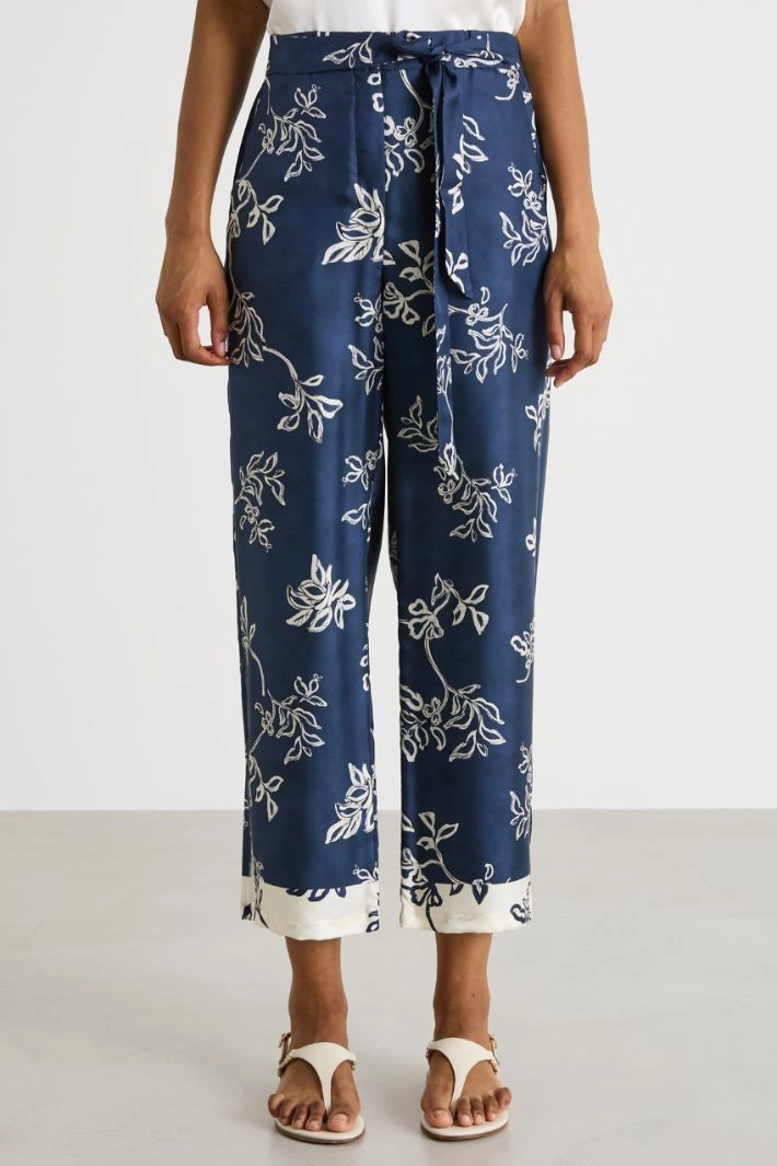Straight-fit trousers crafted in pure silk twill with an all-over print. This piece features an elasticated waist, French pockets and a contrasting band on the hem. Fastening with a hook-and-bar, zip and a belt.