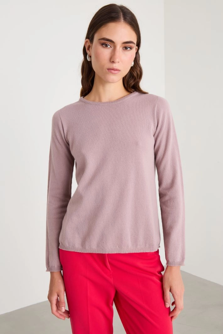 Regular-fit sweater in pure cashmere yarn, with crew neck and long sleeves.